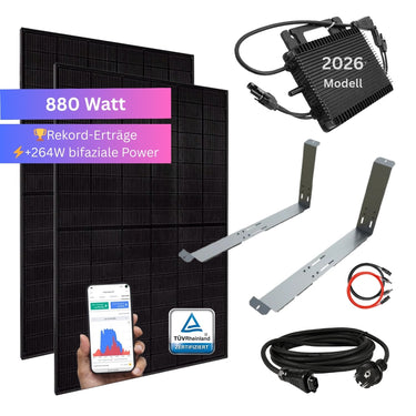 Neben den Modulen ist ein TÜV-zertifizierter Wechselrichter für das deutsche Stromnetz mit dabei. Der effiziente Wechselrichter sorgt zum einen für Sicherheit und zum anderen wandelt dieser die erzeugte Energie in nutzbaren Wechselstrom für den Haushalt um. Natürlich ist WLAN verbaut und die Erzeugung kann in Echtzeit auf dem Handy verfolgt werden.