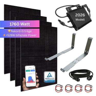 Neben den Modulen ist ein TÜV-zertifizierter Wechselrichter für das deutsche Stromnetz mit dabei. Der effiziente Wechselrichter sorgt zum einen für Sicherheit und zum anderen wandelt dieser die erzeugte Energie in nutzbaren Wechselstrom für den Haushalt um. Natürlich ist WLAN verbaut und die Erzeugung kann in Echtzeit auf dem Handy verfolgt werden.