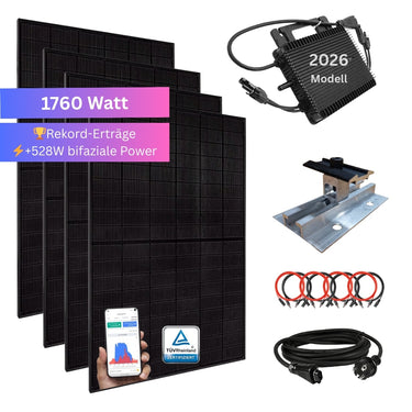 Neben den Modulen ist ein TÜV-zertifizierter Wechselrichter für das deutsche Stromnetz mit dabei. Der effiziente Wechselrichter sorgt zum einen für Sicherheit und zum anderen wandelt dieser die erzeugte Energie in nutzbaren Wechselstrom für den Haushalt um. Natürlich ist WLAN verbaut und die Erzeugung kann in Echtzeit auf dem Handy verfolgt werden.