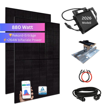 Neben den Modulen ist ein TÜV-zertifizierter Wechselrichter für das deutsche Stromnetz mit dabei. Der effiziente Wechselrichter sorgt zum einen für Sicherheit und zum anderen wandelt dieser die erzeugte Energie in nutzbaren Wechselstrom für den Haushalt um. Natürlich ist WLAN verbaut und die Erzeugung kann in Echtzeit auf dem Handy verfolgt werden.