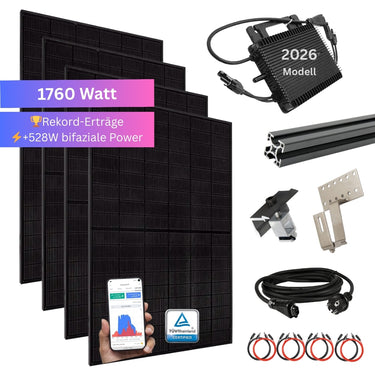 Neben den Modulen ist ein TÜV-zertifizierter Wechselrichter für das deutsche Stromnetz mit dabei. Der effiziente Wechselrichter sorgt zum einen für Sicherheit und zum anderen wandelt dieser die erzeugte Energie in nutzbaren Wechselstrom für den Haushalt um. Natürlich ist WLAN verbaut und die Erzeugung kann in Echtzeit auf dem Handy verfolgt werden.