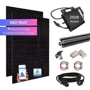 Neben den Modulen ist ein TÜV-zertifizierter Wechselrichter für das deutsche Stromnetz mit dabei. Der effiziente Wechselrichter sorgt zum einen für Sicherheit und zum anderen wandelt dieser die erzeugte Energie in nutzbaren Wechselstrom für den Haushalt um. Natürlich ist WLAN verbaut und die Erzeugung kann in Echtzeit auf dem Handy verfolgt werden.