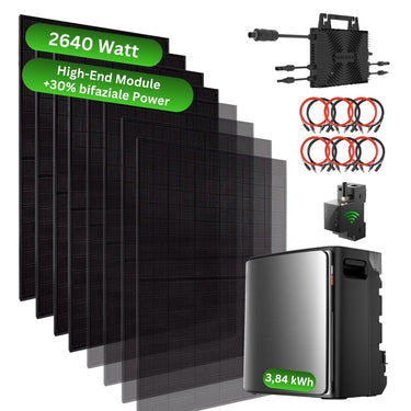 ✨ Highlight: Achtung: Bei anderen Händlern sind keine Kabel dabei. Wir packen selbstverständlich unsere Kabel Made in Germany mit dazu. So haben Sie keinerlei Leistungsverluste und müssen nichts teuer nachkaufen. Also ein echtes Komplett-Paket bereit zum durchstarten. Sogar mit SmartMeter gratis!